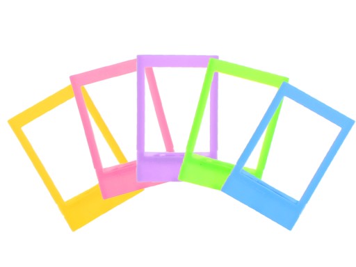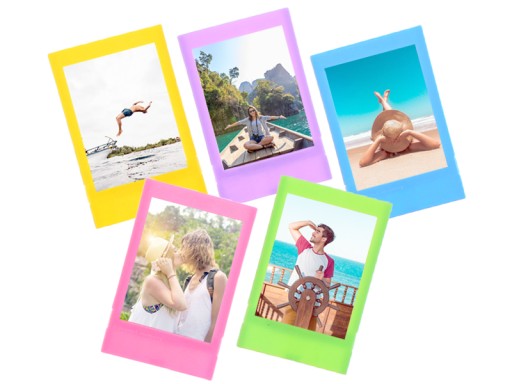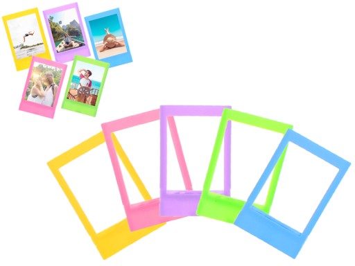 Zestaw ramek to idealny produkt dla wszystkich miłośników fotografii natychmiastowej, zawiera 5 szt. kolorowych ramek: niebieska, zielona, fioletowa, żółta, różowa.