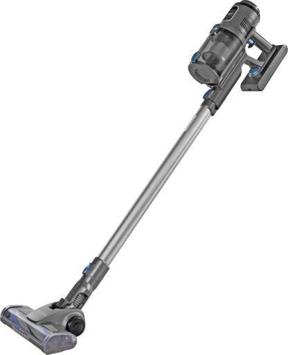 Intensywność ssania wspiera szeroka szczotka główna, obracająca się z prędkością 8000 obrotów na minutę. Oświetlenie LED zapewnia dobrą widoczność nawet w najciemniejszych zakamarkach. Oprócz szczotki głównej wyposażenie obejmuje również ssawkę szczelinową, ssawkę 2 w 1 oraz bardzo praktyczny wąż ssący, który zazwyczaj nie jest dodawany jako standardowe wyposażenie odkurzaczy bezprzewodowych.