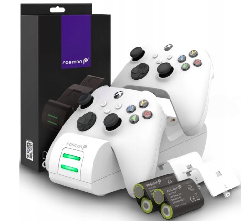 Ładowarka Fosmon Dual 2 Max posiadająca akumulator 2x 2200 mAh.ładowarka jest komaptybilna z kontrolerami Xbox Series X S (2020), Xbox One One X One S Elite.bardzo duża wytrzymałość łądowarki.Opakowanie uszkodzone.