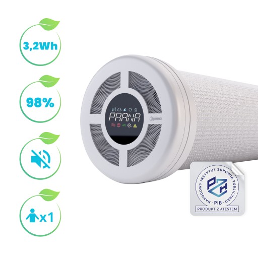 - Dzięki innowacyjnej konstrukcji rekuperatorów PRANA®, współczynnik efektywności sięga 98%. Jednym ze znaczących osiągnięć procesu pozyskania świeżego powietrza przez rekuperator PRANA® jest brak konieczności stosowania filtrów.