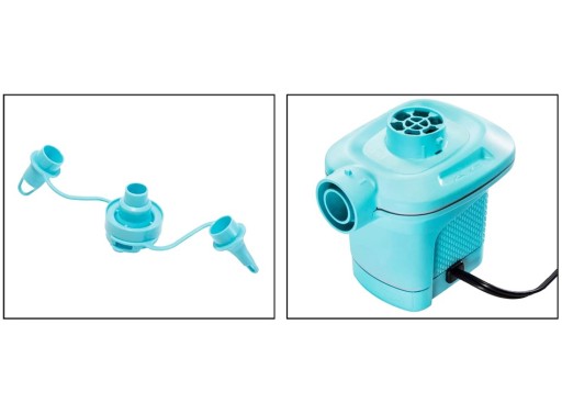 Pompka oferuje także funkcję wypompowywania powietrza, a 3 wymienne końcówki sprawiają, że pompka jest kompatybilna z większością materacy i dmuchanych zabawek.