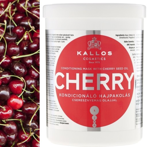 ⭐KALLOS KJMN maska do włosów z olejem z pestek czereśni CHERRY 1000ml 1L⭐