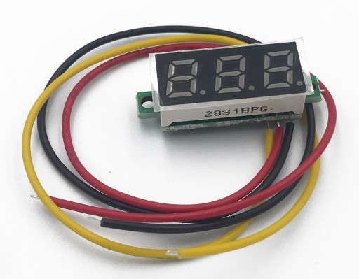 W wersji trój przewodowej zasilanie miernika w zakresie od 3 do 30v podpinamy pomiędzy czarnym ( - ) a czerwonym (+) przewodem a wejście pomiarowe pomiędzy czarnym (-) a żółtym (+) przewodem umożliwiając w ten sposób pomiar napięć w zakresie od 0 do 99,9 V