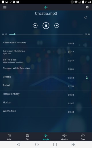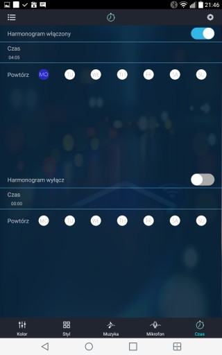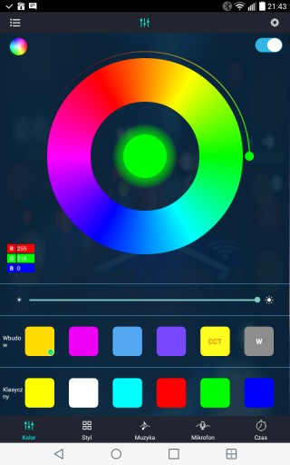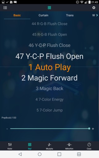 Posiada wbudowane efekty, umożliwia zmianę jasności, szybkości, koloru i innych.