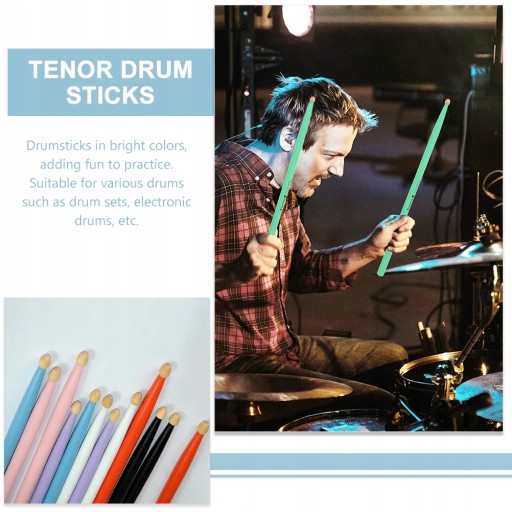 Pałki perkusyjne w jasnych kolorach, dodające zabawy do ćwiczeń. Nadaje się do różnych bębnów, takich jak zestawy perkusyjne, perkusja elektroniczna itp.