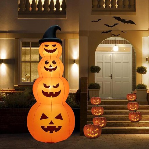 [Z diodami LED]: Nadmuchiwana dekoracja na Halloween ma wbudowane światła LED, które oświetlają dom lub podwórko w nocy, łatwo przyciągając sąsiadów i dzieci.