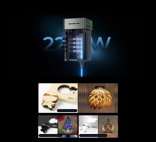 1. Najwyższa moc transmisji 22 W: Przyjęto kompresji punktowej FAC, a moc lasera został wysłany do 22 W przez sieć czterech diod laserowych o mocy 6 W. Moduł laserowy o mocy 22 W ma większa moc, większa moc penetracji, grubsze cięcie, napęd cięcie i większe wycinanie.Może jednorazowo wycinać lipę o grubości 15 mm, jednorazowo czarny akryl o grubości 10 mm i blachę o grubości 0,1 mm.