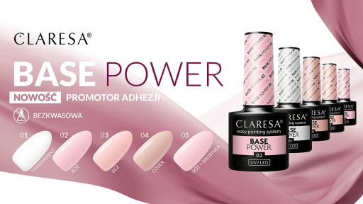 Odpowiedź: Główne cechy Claresa Power Base Baza hybrydowa to średniorzadka konsystencja, doskonała przyczepność dzięki specjalnemu składowi, trwałość do 3 tygodni, wzmocnienie i utwardzenie naturalnej płytki, a także efekt kamuflażu, który wizualnie wyrównuje kolor płytki.