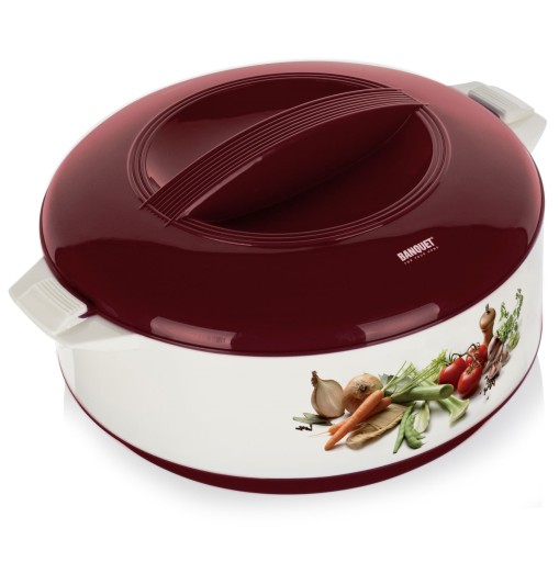 Termos obiadowy Vegetables firmy Banquet pomoże w utrzymaniu odpowiedniej temperatury przygotowanego posiłku. Termos jest wykonany z plastiku i stali nierdzewnej, posiada podwójne ścianki, które są rozdzielone izolatorem - pianką poliuretanową. Termos chroni zawartość od temperatury otoczenia, dzięki czemu ciepły lub zimny posiłek zostanie utrzymany w odpowiedniej temperaturze. Aby długo zachować właściwości cieplne przechowywanej żywności, należy ogrzać wnętrze termosu ciepłą wodą przed umieszczeniem ciepłych posiłków, lub schłodzić przed umieszczeniem w termosie zimnych posiłków. Termos posiada wkład ze stali nierdzewnej.