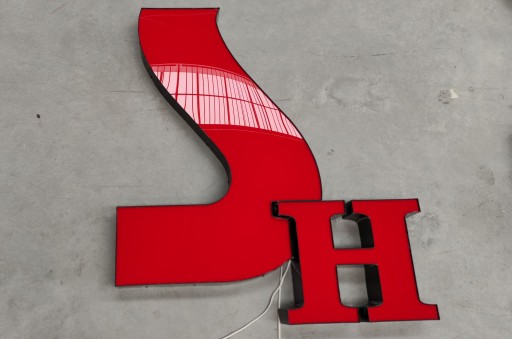- materiał: front z plexi 3mm wyklejony folią plotowaną, wydrukiem lub o świecących treściach, frezowanych w dibondzie,