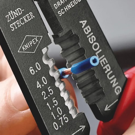 Do cięcia kabli, ściągania izolacji z drutów i zaciskania izolowanych i nieizolowanych końcówek kablowych i łączników wtykowych oraz otwartych łączników wtykowych. Z gwintowanymi otworami do odcinania miedzianych i mosiężnych wkrętów bez łba o średnicy M 2,6 M 3 M 3,5. M 4 oraz M 5. Połączenie gwintowe zwiększa stabilność i płynność działania. Specjalna stal o dużej wytrzymałości