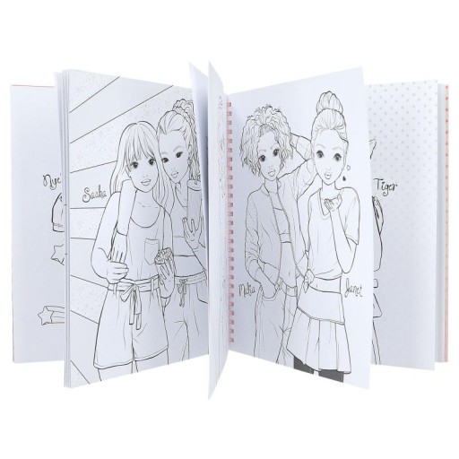 Kolorowanka z kotkiem TOP Model zawiera, 20 stron do kolorowania (modelki i kociaki) i jedna strona z naklejkami.