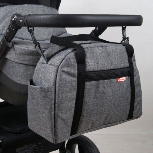 Nowoczesna, pojemna, praktyczna, solidnie wykonana torba, niezastąpiona podczas codziennych spacerów i w podróży. Wykonana z atestowanych, impregnowanych (wodoodpornych) tkanin poliestrowych typu len stosowanych do produkcji wózków dziecięcych. Wewnątrz znajduje się czarna nieprzemakalna podszewka, cała torba usztywniona jest pianką PUR. Torbę stanowi duża komora główna zapinana na zamek oraz 5 kieszeni. Jedna kieszeń wewnątrz torby, na zewnątrz: dwie boczne kieszenie na butelki, kieszeń z tyłu oraz z przodu kieszeń zapinana na zamek na drobne akcesoria i dokumenty. Torba wyposażona jest w długi pasek do noszenia na ramieniu oraz uszy do noszenia na ramieniu lub w ręku. Torba posiada klipsy do montażu na wózku wyposażonym w haczyki oraz komplet dodatkowych uchwytów zapinanych na rzep do montażu na każdym innym wózku który nie jest wyposażony w haczyki do zawieszenia torby.