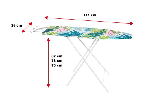 Prezentujemy praktyczną i niezawodną deskę do prasowania o wymiarach 111x36 cm. Zapewnia stabilność i wygodę, dzięki czemu prasowanie będzie łatwe i bezproblemowe. Posiada trzystopniową regulację wysokości dla dodatkowego komfortu.