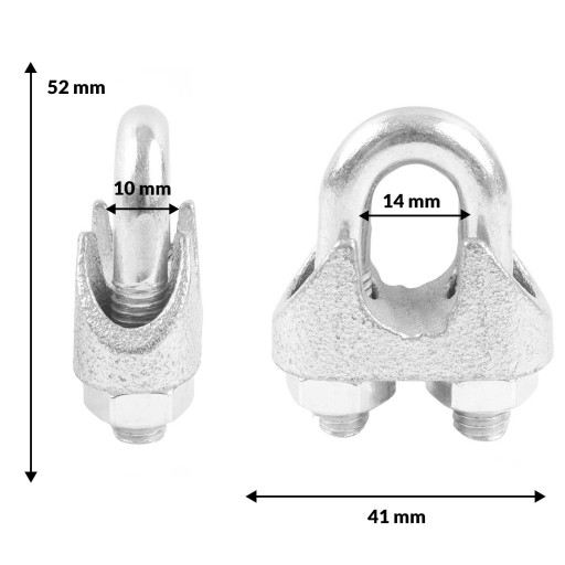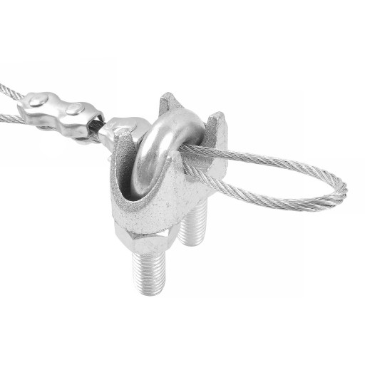 Wysokiej jakości zacisk linowy kabłąkowy do lin splotowych okrągłych. Zaciski te mogą być stosowane przy montażu linek stalowych jak i lin z włókien sztucznych. Służą do łączenia, przytrzymywania i zaciskania linek.