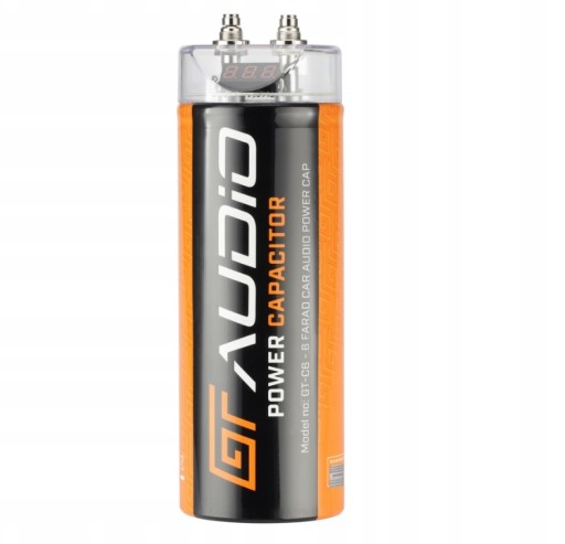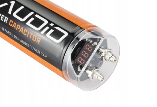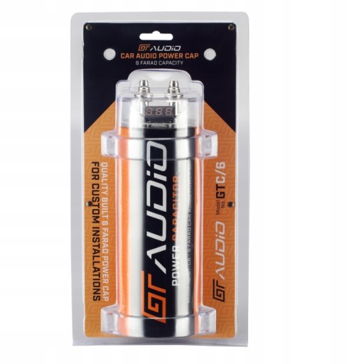 Wysokiej jakości kondensator o nominalnej pojemności 6 Farady, służący do wspomagania pracy akumulatora i poprawy impulsowej stabilności instalacji zasilającej system car audio. Kondensator o takiej pojemności jest w stanie spełnić rolę efektywnego bufora energii, skutecznie i realnie stabilizującego impulsowe spadki napięcia w instalacjach car audio o mocy do 6000W.