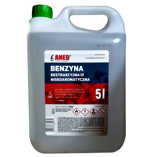 Benzyna Ekstrakcyjna III Niskoaromatyczna przeznaczona jest do rozcieńczania tłuszczów, olejów, wosków, wyrobów lakierowych np. olejnych i ftalowych, schnących na powietrzu oraz pokostu lnianego. Stosowana również do odtłuszczania powierzchni przed malowaniem oraz czyszczenia części urządzeń, narzędzi oraz innych elementów po malowaniu.
