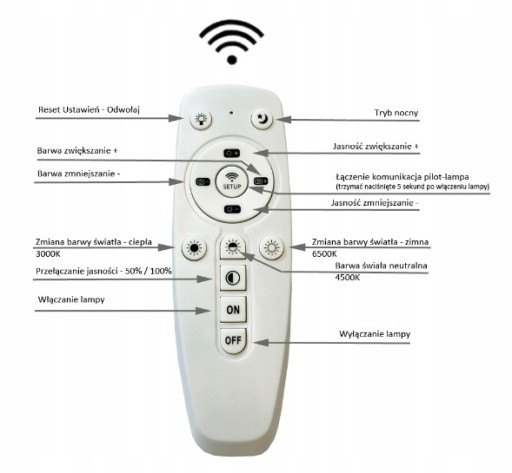 - Barwa światła : ciepła, zimna, neutralna można ustawić dowolną + PILOT