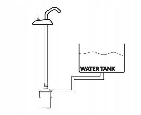 Uwaga: prezentowana pompa przelewowa nie zasysa wody, dlatego zbiornik z cieczą nie może znajdować się poniżej urządzenia - wodę należy dostarczyć do urządzenia.