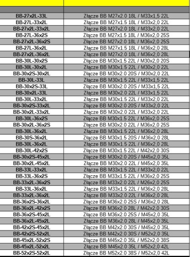 Poniżej przedstawiamy pełen katalog złączy prostych BB redukcyjnych:
