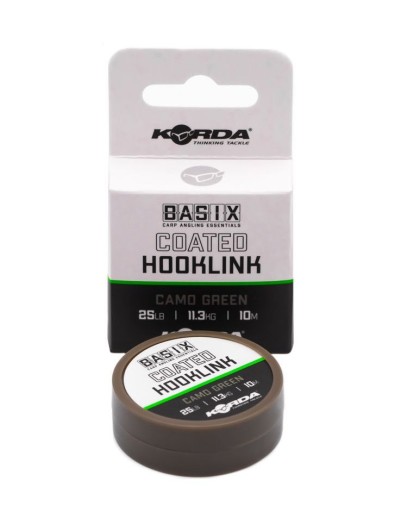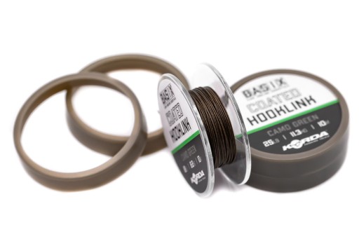 BASIX Coated Hooklink to miękki, giętki powlekany materiał plecionki, który nadaje się do różnego rodzaju prezentacji przynęt tonących, waftersów i pop-upów. Zarówno wewnętrzna plecionka, jak i zewnętrzna powłoka mają subtelny kolor „camo green”, dzięki czemu będą pasować do każdego rodzaju dna, na którym łowisz. Ułoży się prosto bez potrzeby gotowania na parze i ma doskonałe właściwości zapobiegające splątaniu, a powłokę można łatwo usunąć tam, gdzie jest to wymagane, aby utworzyć zawias i nadać przyponom dodatkowy ruch. Wiąże się bardzo dobrze bez zrywania powłoki zewnętrznej, a dobrą wytrzymałość można osiągnąć za pomocą każdego konwencjonalnego węzła wędkarskiego.