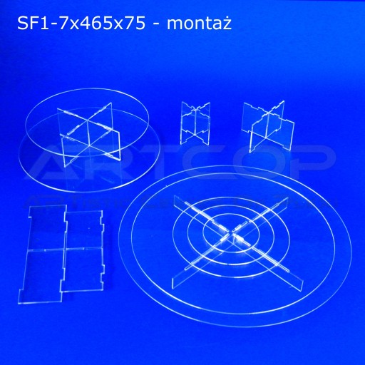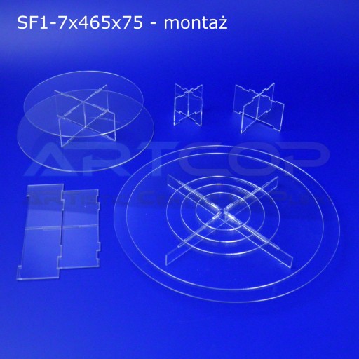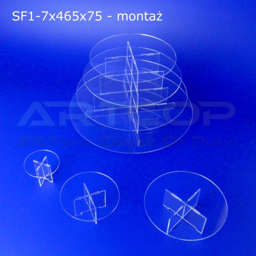 Stojak kołowy, kaskadowo-modułowy z plexi 3mm wys. 50cm.