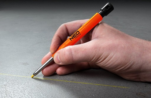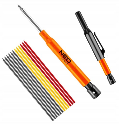 - To ołówek warsztatowy, stolarsko-murarski ze zintegrowaną temperówką, oferowany w zestawie z 12 grafitowymi wkładami w trzech kolorach: czarnym, czerwonym oraz żółtym.
