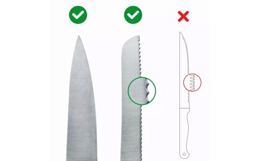 ✔️ gładkie, ząbkowane np. nóż do chleba,