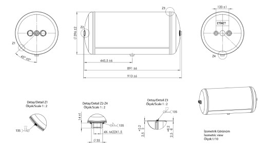 РЕЗЕРВУАР ДЛЯ ВОЗДУХА 100 ЛИТРОВ 396x915 / 030352209<>