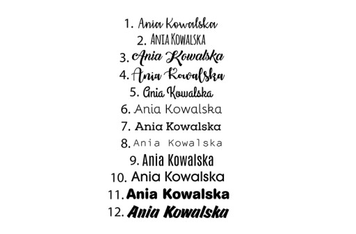 – WYBIERZ WZÓR CZCIONKI Z WZORNIKA PONIŻEJ
