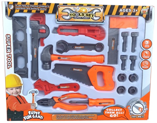 Wieloelementowy zestaw narzędzi przeznaczony dla małego majsterkowicza. Zestaw składa się z 18 elementów, wyposażony jest w niezbędne elementy potrzebne w domowym warsztacie.