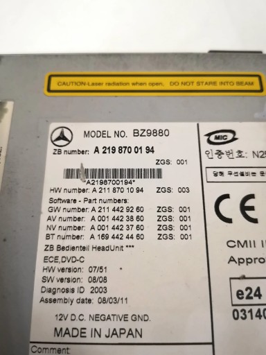W211 W219 ЛИФТ РАДИОНАВИГАЦИОННЫЙ ЧЕЙНДЖЕР COMAND BZ9880 2198700194 BDB