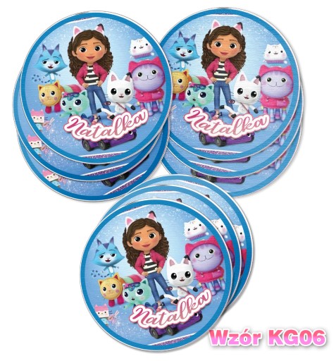 ✅12 SZTUK PERSONALIZOWANYCH WPELEK NAKLEJEK Z KOCI DOMEK GABI + IMIĘ GRATIS