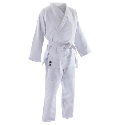 Grubość tkaniny, a tym samym jej waga, wyrażona jest w gramach na metr kwadratowy. Nazywamy to gramaturą. Do judo należy wybrać strój z wytrzymałego materiału, który stabilnie leży podczas chwytów i który można prać w pralce. Dlatego właśnie zdecydowaliśmy się na zastosowanie tkaniny wykonanej w 65% z poliestru i w 35% z bawełny, wytrzymującej zarówno szarpnięcia, jak i pranie. 350 g/m² to gramatura wystarczająca dla początkujących.