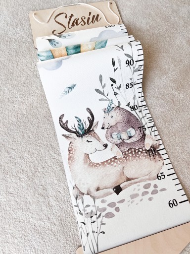 Śliczna personalizowana miarka wzrostu drukowana na płótnie.