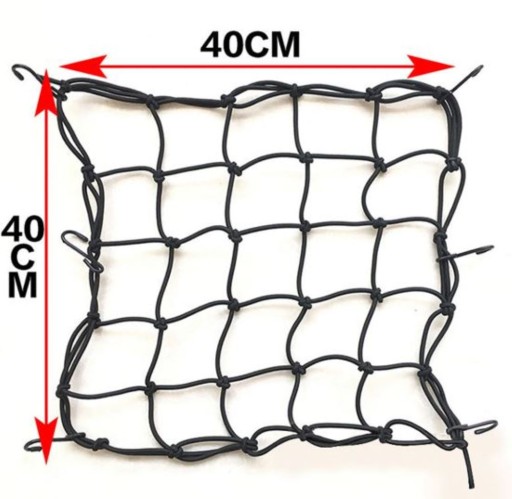 - Siatka gumowa z zaczepami do przewożenia bagażu podczas jazdy motocyklem, rowerem lub skuterem. Idealne rozwiązanie do przewożenia lub przechowywania kasku, plecaka, zakupów.