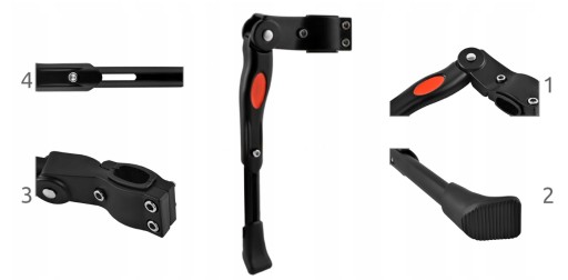ANTYPOŚLIZGOWE NAKŁADKI - podpórka posiada 2 gumowe podkładki, które podczas montażu do ramy powodują, że rower nie rysuje się; dodatkowo nóżka posiada antypoślizgową końcówkę, stopka jest na tyle szeroka, że podczas ustawienia na miękkiej powierzchni rower nie przewróci się.