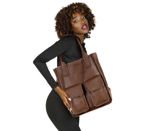 Brązowa torebka damska typu shopper bag z kieszeniami