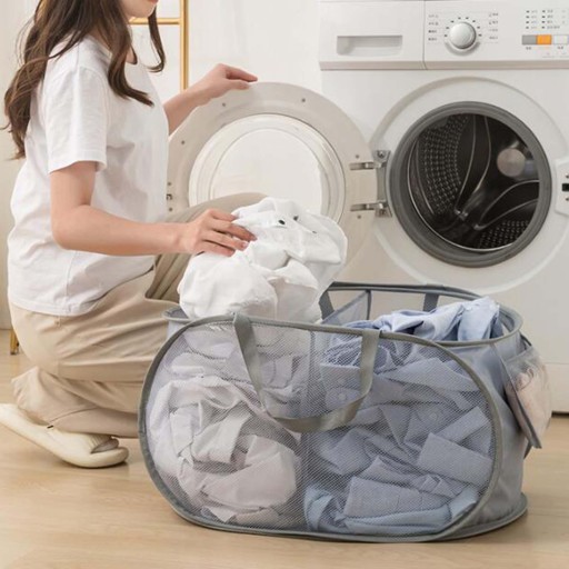 [Lekki] kosz z uchwytem do przenoszenia, wzmocnione szwy, trwalszy. Siatkowa konstrukcja jest oddychająca, lekka i łatwa do przenoszenia do pralni z dowolnego miejsca.