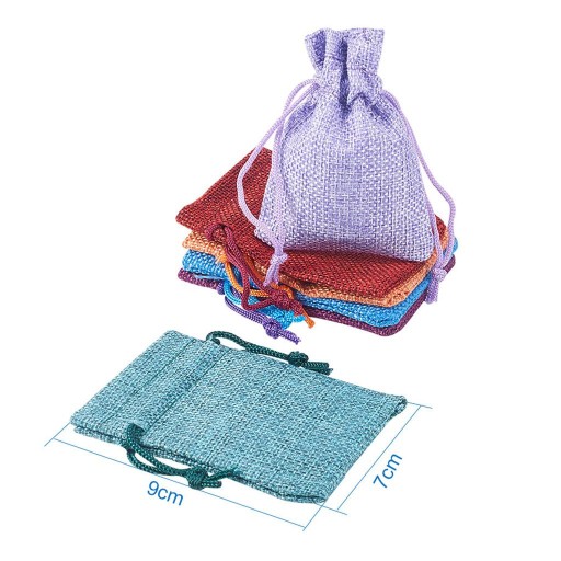 10 sztuk worków jutowych ze sznurkiem (różne kolory)