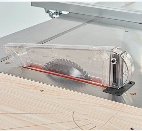 - Wyposażony w tę osłonę ochronną piły stołowej, kurz i brud nie będą już łatwo dostawać się do tarczy.