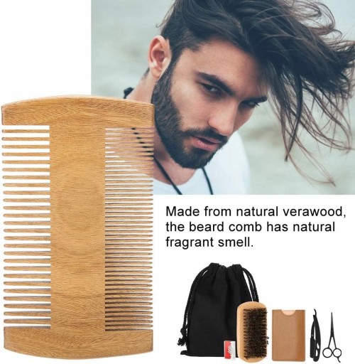 KIESZONKOWY ROZMIAR Kieszonkowa szczotka do brody i grzebień do wsów idealnie pasuje do kieszeni dinsów lub torby dziki czemu moesz pielgnowa zarost w dowolnym miejscu i czasie Zestaw do brody Lekki i may mona go nosi wszdzie UTRZYMAJ NIEDWIEDZIE LNICE I GADKIE Zestaw grzebieni do brody z bambusa i dzika masuje zarost stymuluje produkcj sebum i usuwa brud utrzymujc zdrowy zarost i skór. Antystatyczny drewniany grzebień bez wysiku rozczesuje mokre i suche brody DOSKONAA JAKO Noyczki do wsów wysokiej jakoci materia ze stali nierdzewnej jest trway i odporny na rdz noyczki i maszynka do golenia mog szybko ci wosy i brod aby poprawi wydajno pracy DOWóDCY UWAG GDZIEKOLWIEK JESTE Doskonale wypielgnowana broda wyróni Ci z tumu Pewno siebie któr zdobdziesz sprawi e osigniesz kady cel.Ten zestaw jest idealny do kadego rodzaju brody i wsów.Dugi krótki gruby cienki gruby spltany ... IDEALNY PREZENT DLA MCZYZN Ten zestaw grzebieni i szczotek jest wykonany z wysokiej jakoci materiaów i jest w uroczym opakowaniu.Dziki temu jest idealnym prezentem na Dzień Ojca Walentynki Urodziny Boe Narodzenie Rocznic lub Specjalne Okazje