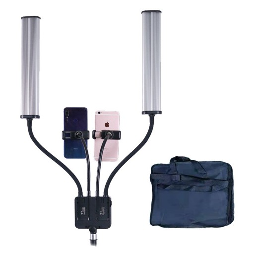 Opakowanie: 1 światło dwuramienne + 2 węże + 2 klipsy do zestawu słuchawkowego + 1 zasilacz + 1 kabel zasilający + 1 przenośna torba na światło (baterie nie są dostarczane)