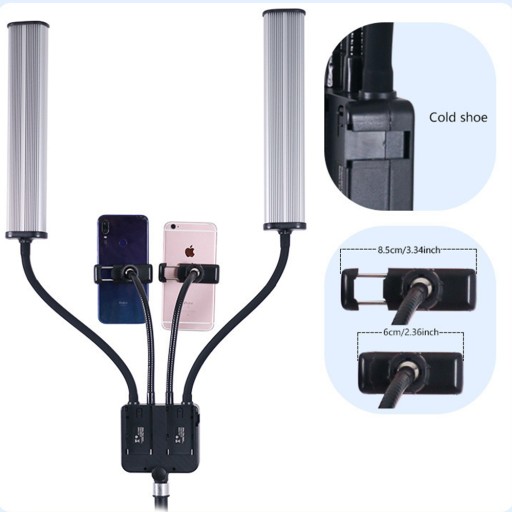 * Podwójny uchwyt na telefon: podwójny uchwyt na telefon można zastosować w zakresie od 6 cm/2,36 cala do 8,5 cm/3,34 cala. Jest dostępny z możliwością usunięcia na rynek. Możesz łatwo na smartfonie przez port USB na lampce LED.