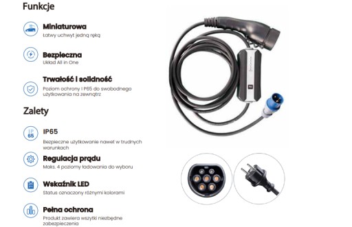 Ładowarka Portable EV Charger Mini marki Teison, to niewielkich rozmiarów urządzenie, które idealnie nadaje się do przechowywania w bagażniku, i które można używać nawet w trudnych warunkach pogodowych.