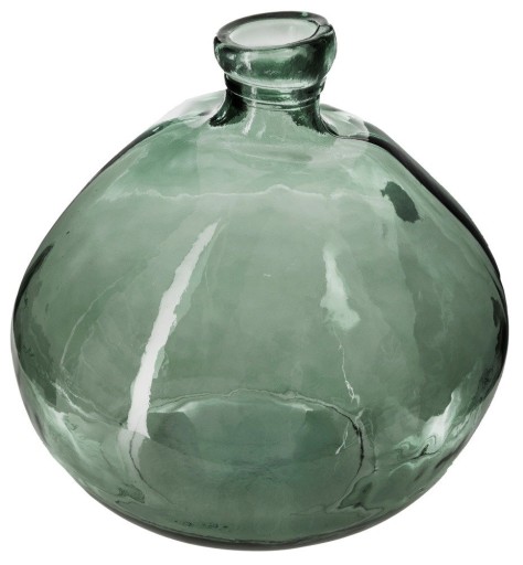 - Materiał wykonania: Ten pękaty wazon został wykonany ze szkła z recyklingu, co czyni go odpowiednim dla fanów ekologii i naturalnych aranżacji.