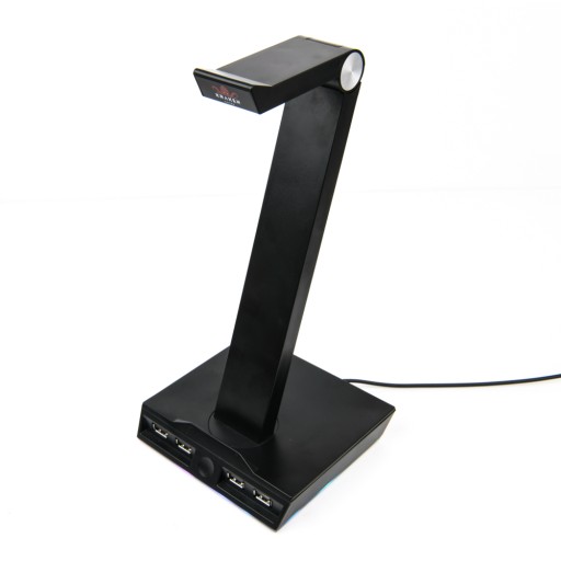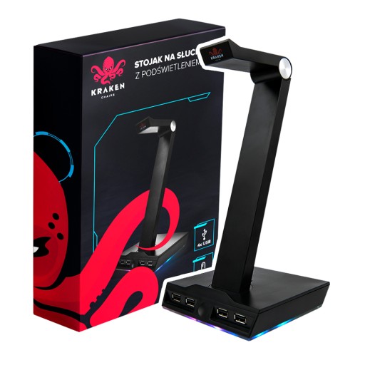 STOJAK UCHWYT NA SŁUCHAWKI LED RGB PODŚWIETLENIE HUB + 4x USB