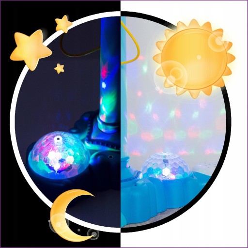 - podstawa z głośnikiem i obrotową kulą ze światłami - rzutnik na ściany.