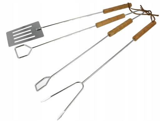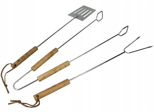 - Trzy elementy zestawu (szczypce, łopatka, widełki)
