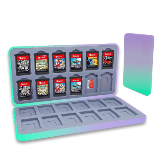 Etui posiada wytłoczony silikonowy wkład, który pomieści aż ✅ 24 karty z grami do Nintendo i równocześnie ✅ 24 karty Micro SD. Miękki, elastyczny materiał, z którego zostały wykonane przegródki nie uszkodzi kart oraz zapobiegnie ich przemieszczaniu się podczas transportu.